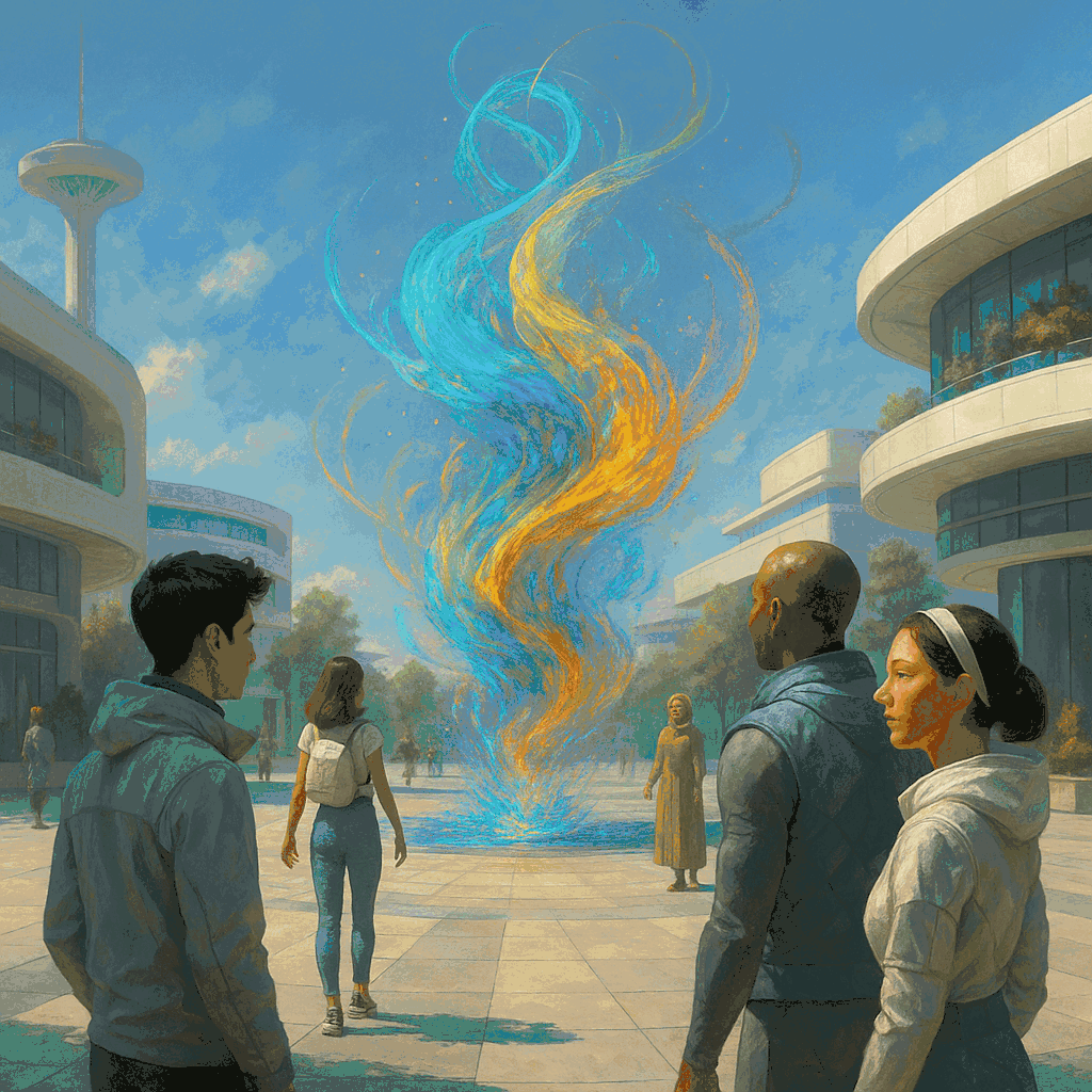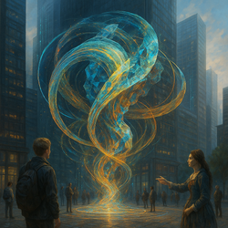 - Neuro-Kinetic Tuning: The artist rehearses with the sculpture in a simulated environment, often using a direct brain-computer interface (BCI). They experience the sculpture's evolution and refine its responses, not by rewriting code, but by providing direct neural feedback of approval or dissonance, tuning the parameters \(\theta\) until the sculpture's behavior aligns with their artistic intent.The finalized kernel is uploaded to the global mixed-reality mesh and permanently anchored to its physical coordinates, where it begins its long, evolving existence.